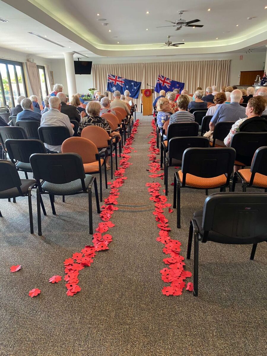 The residents of Tranquil Waters participated in a very moving and solemn ANZAC Day ceremony this morning. The Community Centre was decorated with Poppies and a special display of family mementos from the Defence Forces across the 20th & 21st centuries.
